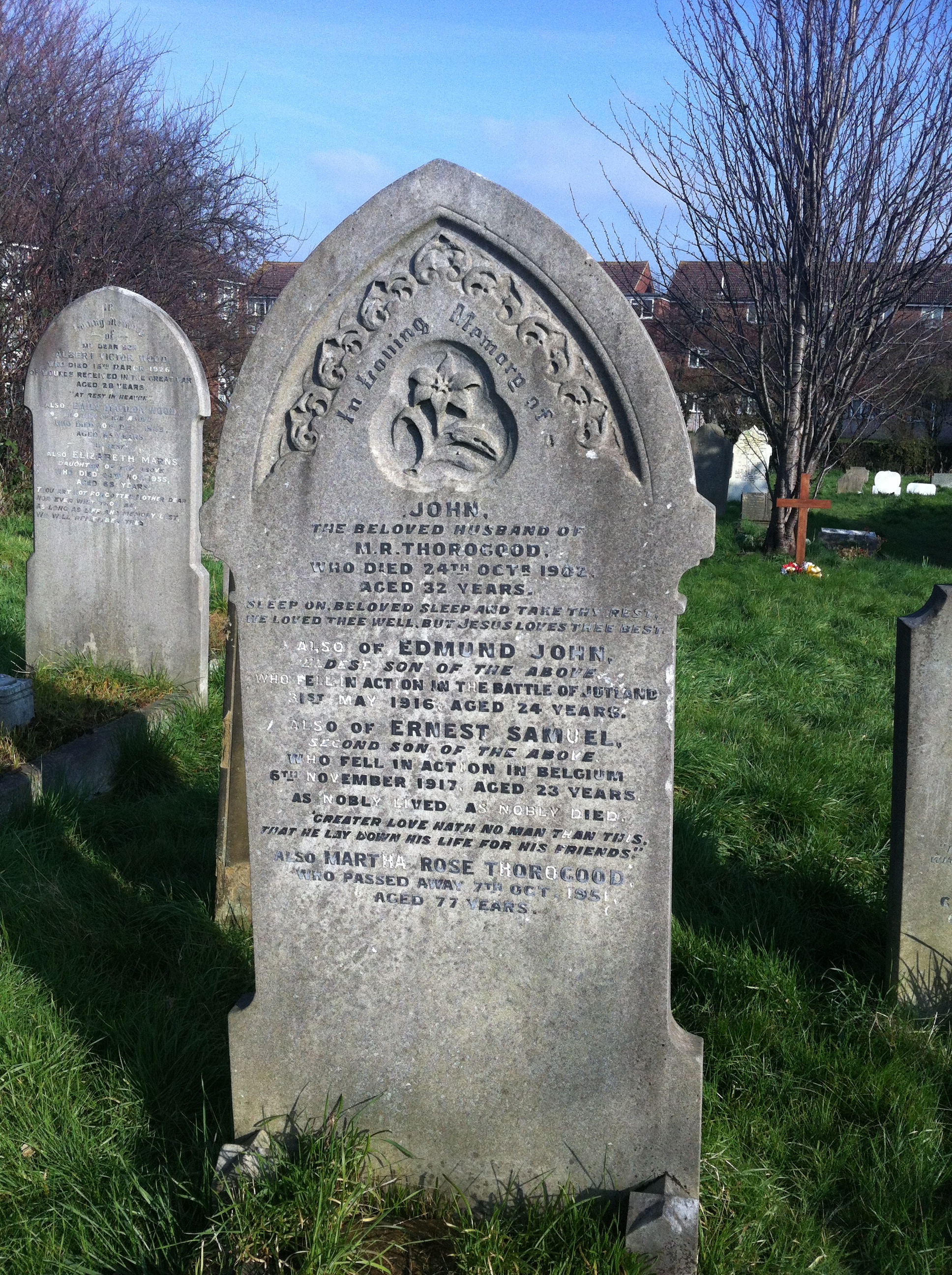 Edmund John Thorogood was a gunner in the Royal Marine Artillery aboard HMS Queen Mary and was killed at the Battle of Jutland on 31 May 1916.