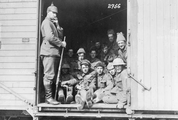 A interesting photograph from the Imperial War Museum’s collection showing British prisoners being transported to camps in Germany after the Battle of Arras in May 1917.