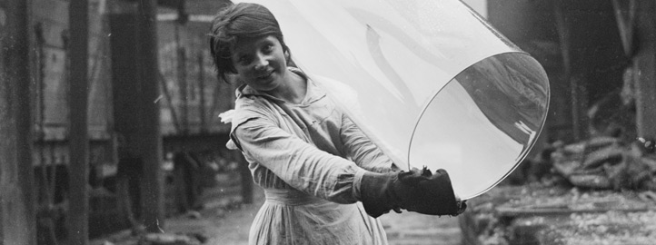 Lewis was an official photographer of the home front. His brief included capturing images of heavy industry and within this he photographed women workers in the glass, automotive and food industries.