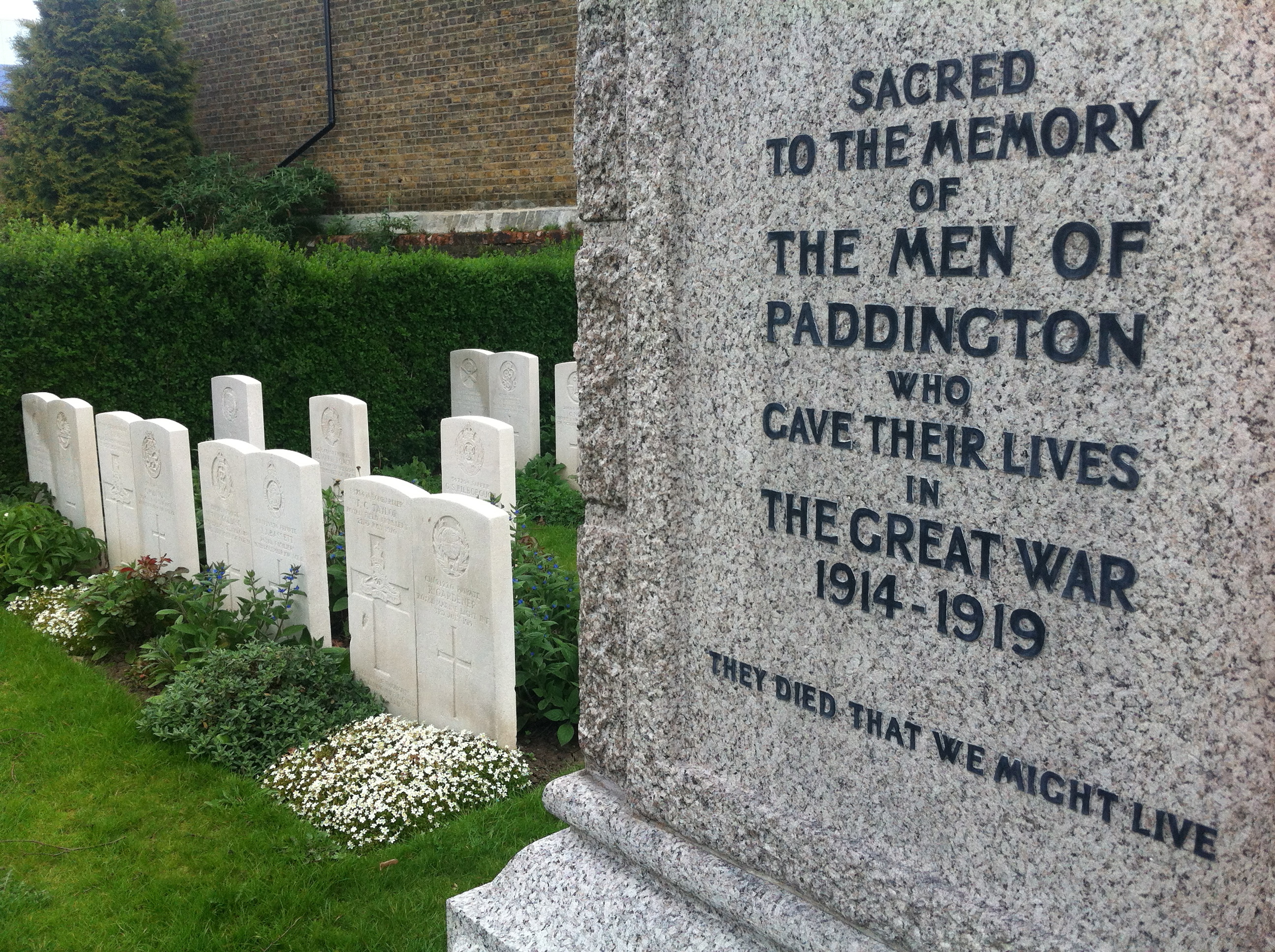 The First World War memorial in Paddington Old Cemetery, Kilburn, London.