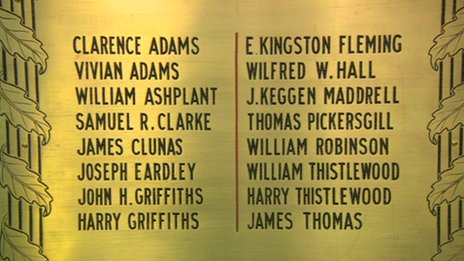 The plaque lists 16 men, five of whom – William Ashplant, Samuel R Clarke, James Clunas, Harry Thistlewood and E Kingston Fleming – were not included in the hall, which honours those who died in two world wars.